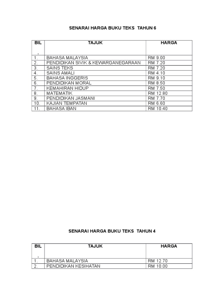 Senarai Harga Buku Teks Dan Buku Aktiviti 2020